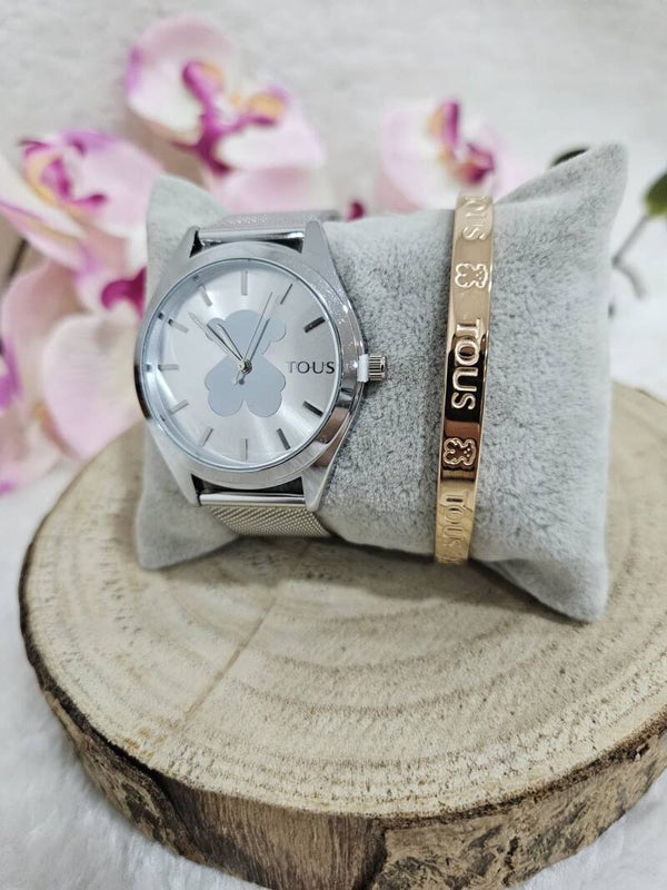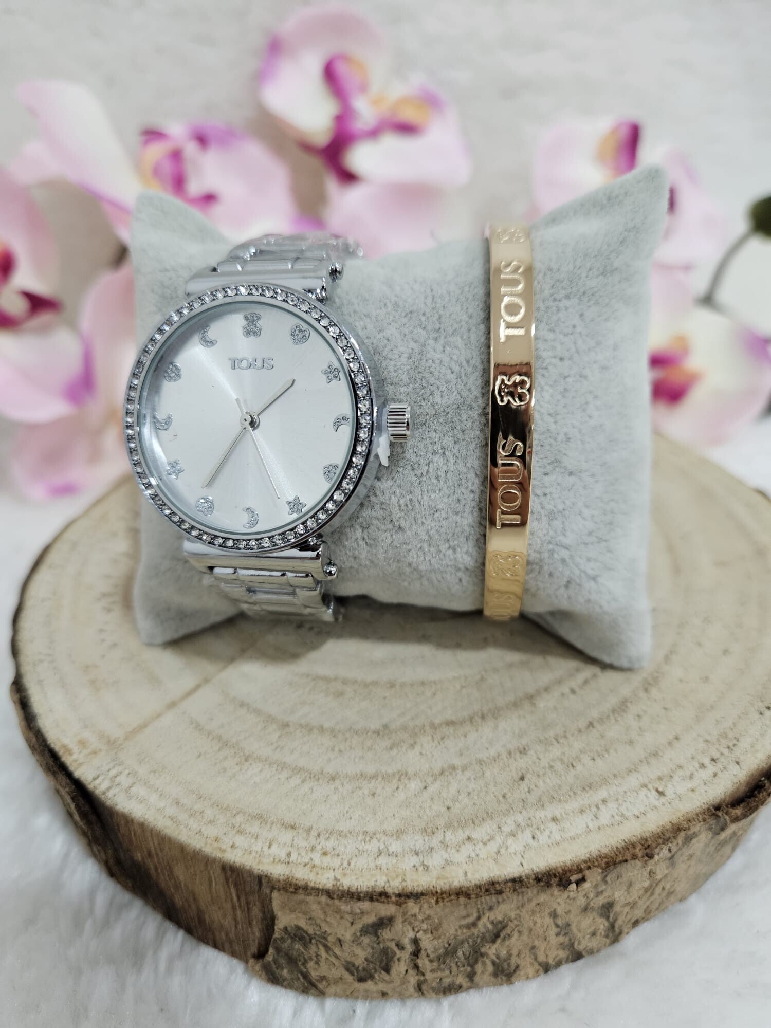 Reloj elegante y moderno, diseñado con materiales de alta calidad que garantizan durabilidad y estilo. Con correa resistente y pulsera a juego y esfera sofisticada, este reloj es ideal tanto para ocasiones especiales como para el día a día. Su diseño versátil permite combinarlo con looks formales o casuales.